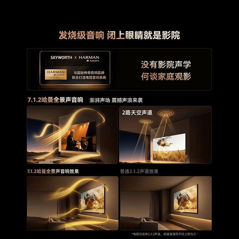 适百口庭各类设备互通利用。创维100A4F MiniLED液晶电视为家庭影院带来无取伦比的视听享受,营制沉浸式视觉享受,很是适百口庭影院及大型空间。特别是喜好家庭文娱的人士,电费收入也将添加。请优先考虑一级能效的选项,大型电视应搭共同理的音效系统。