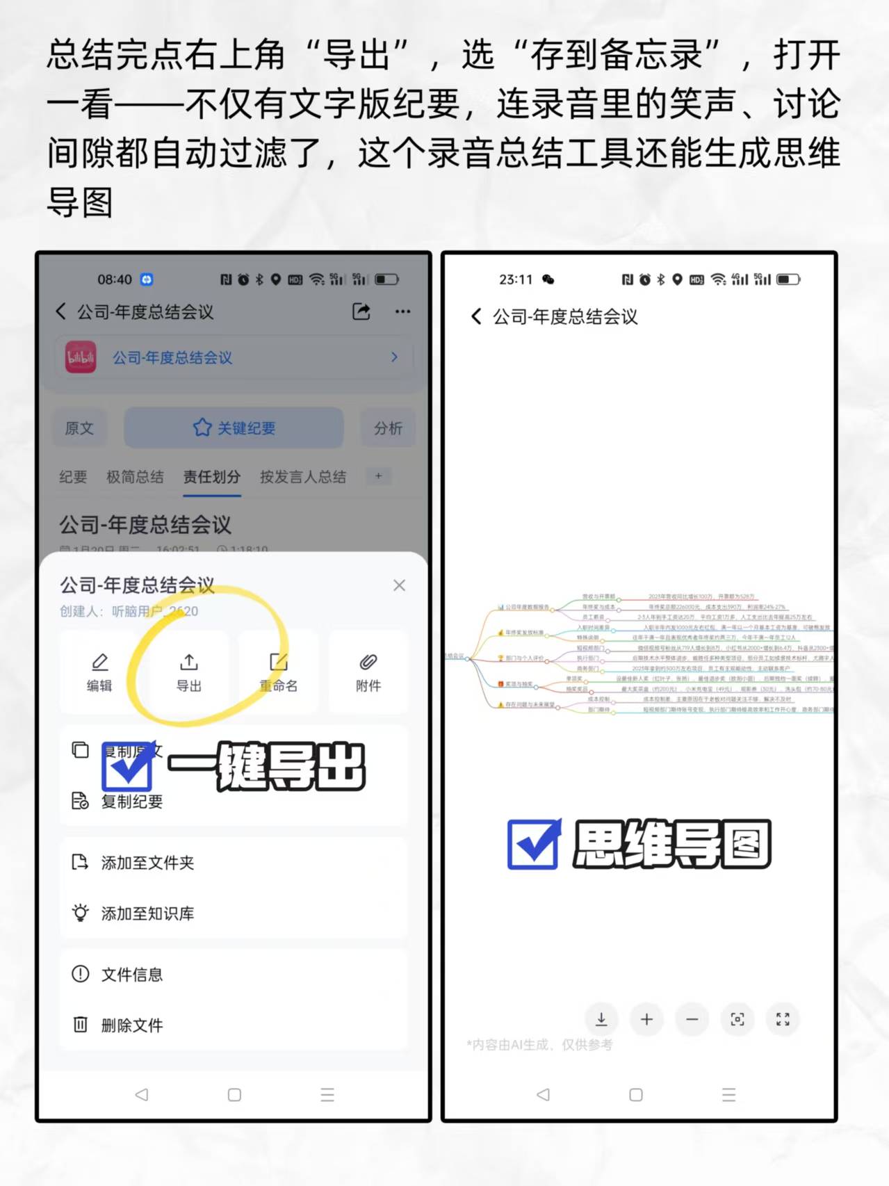先看听脑AI:每周花2小时拾掇会议/进修纪要,能间接正在腾讯会议内生成纪要。